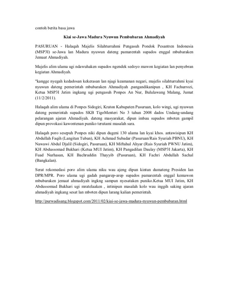 Contoh Berita Dalam Bahasa Jawa Mosaicone